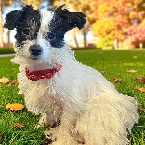 Boo weighs just 7 pounds, is approximately 3 years old, fully vaccinated, tested negative for heartworms, is on heartworm and flea prevention, and is microchipped.
