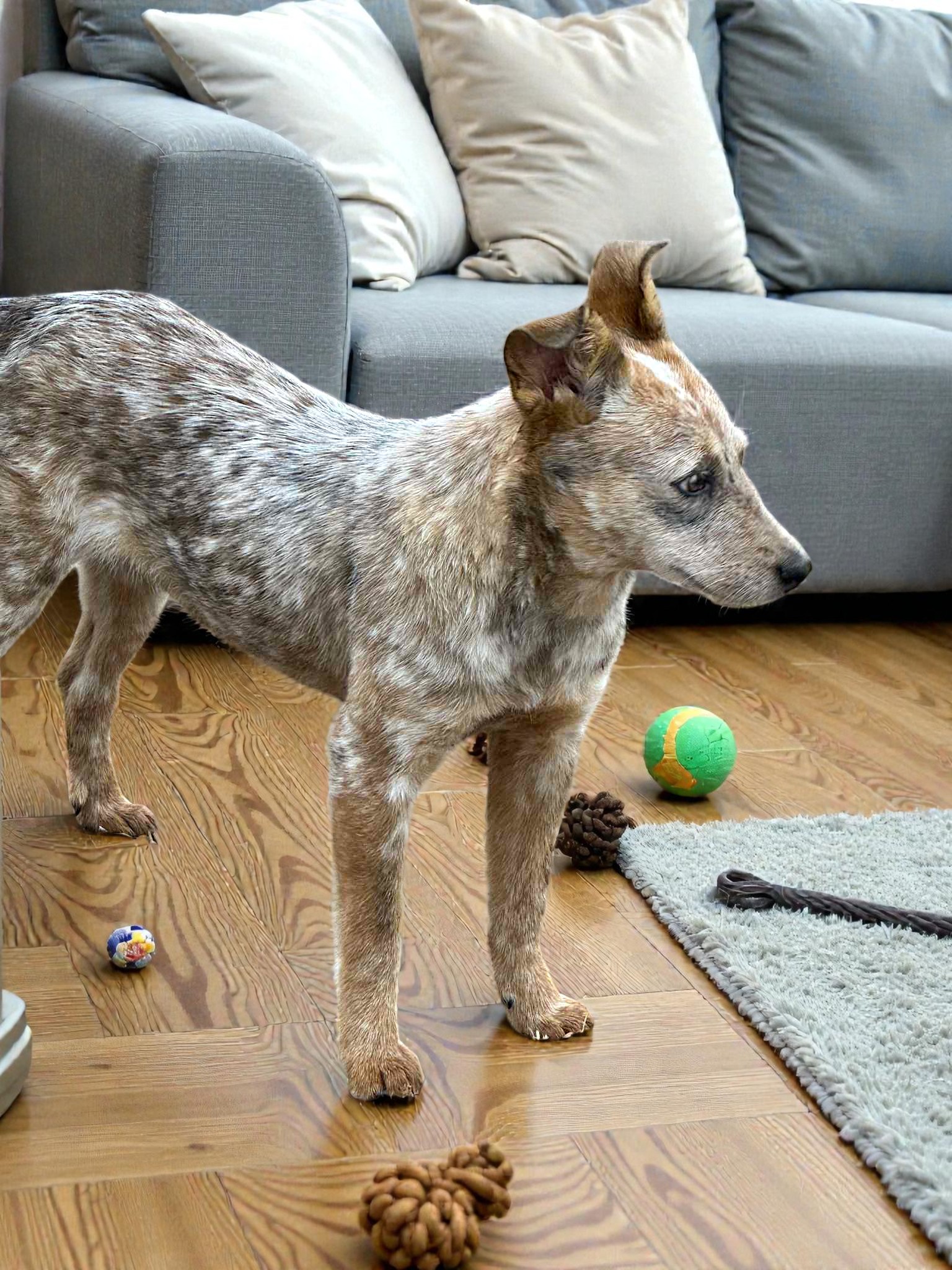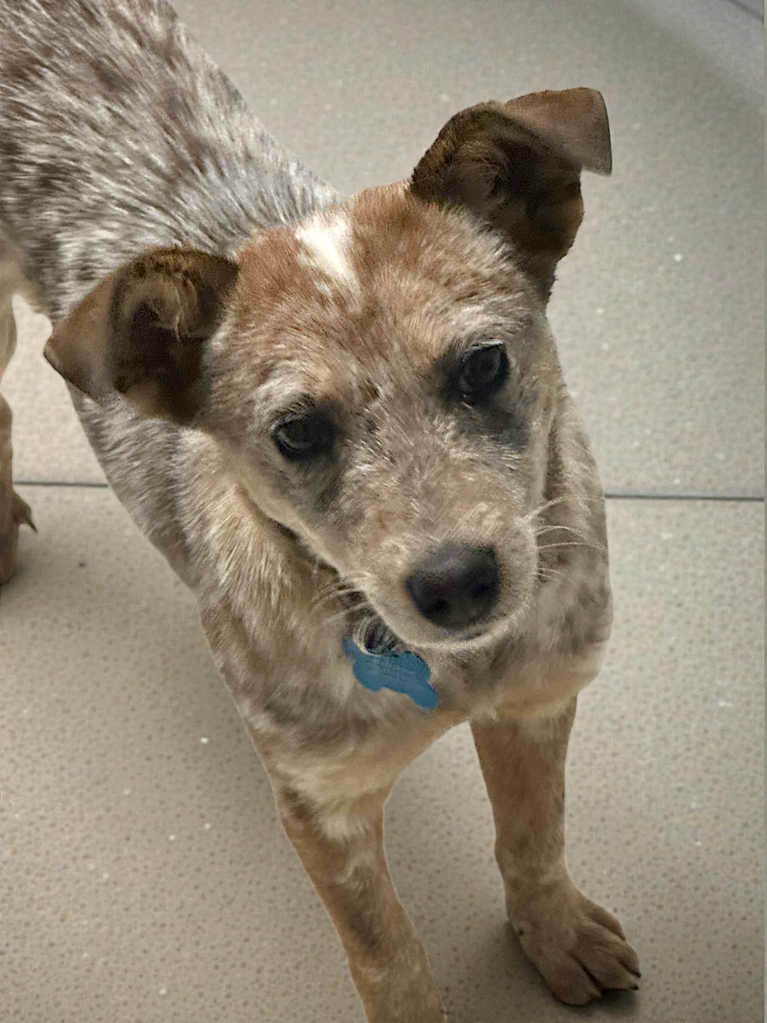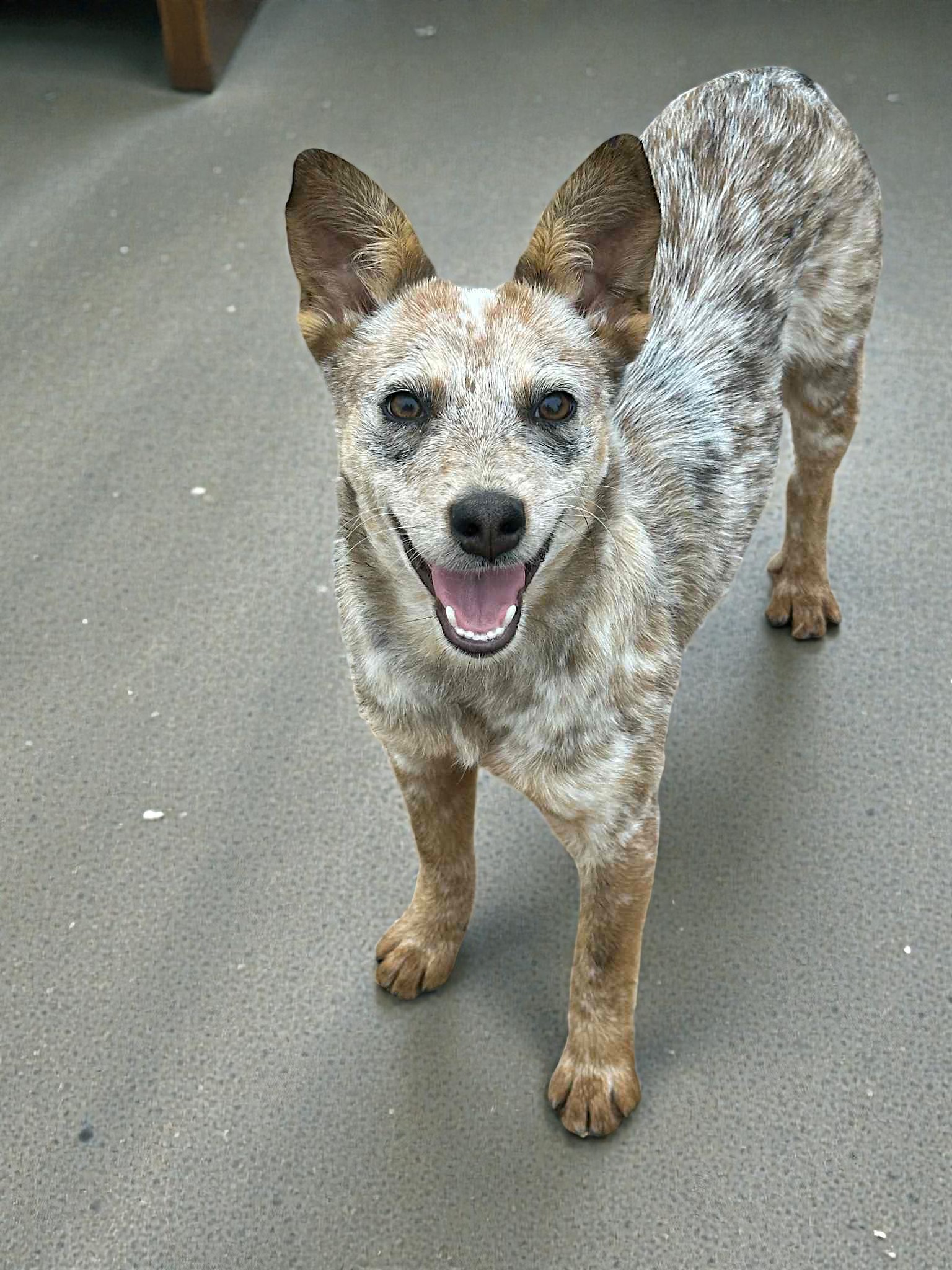 Ember appears to be a Red Heeler / Cattle Dog mix and is still very young, born around June 15, 2025. She is: