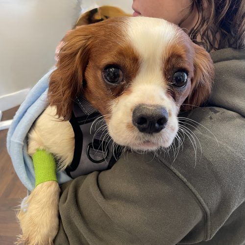 Fabio is a beautiful Blenheim (red and white) King Charles Cavalier who recently joined our rescue as a breeder release. He is approximately 2 years old, weighs 17 pounds, and is a very sweet boy who is just beginning his journey into companion life.