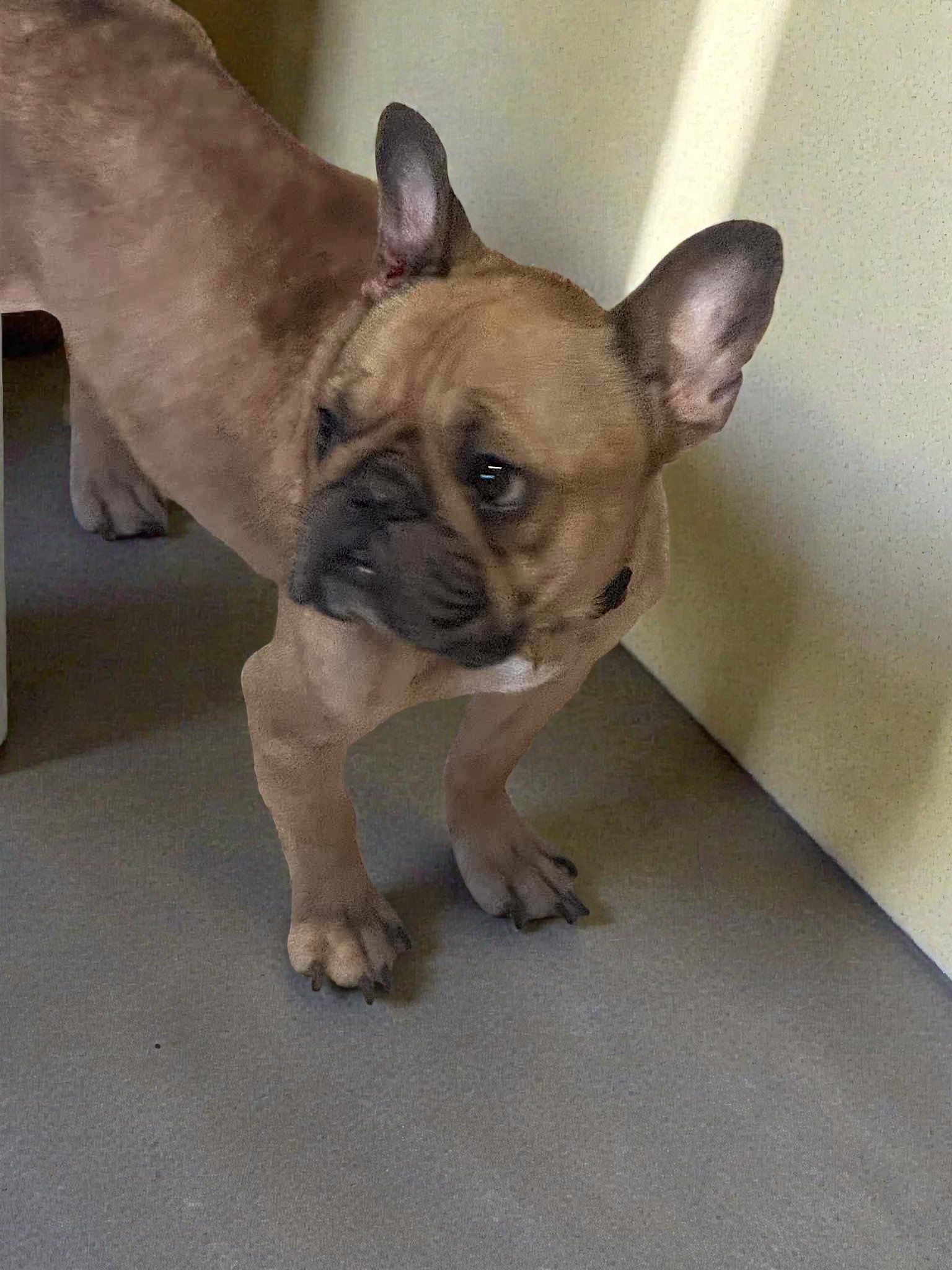 Janine is our first rescue of 2026, and since it’s January and she’s French, the name was a perfect fit! This petite girl weighs just 19 pounds and appears to have had multiple litters in her past. She is now safe in rescue and beginning the medical journey she’s long needed.