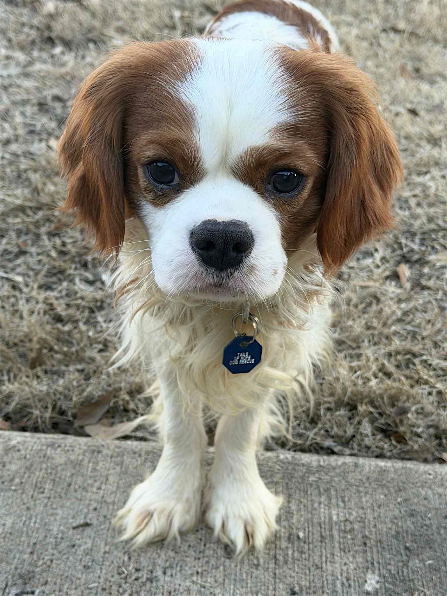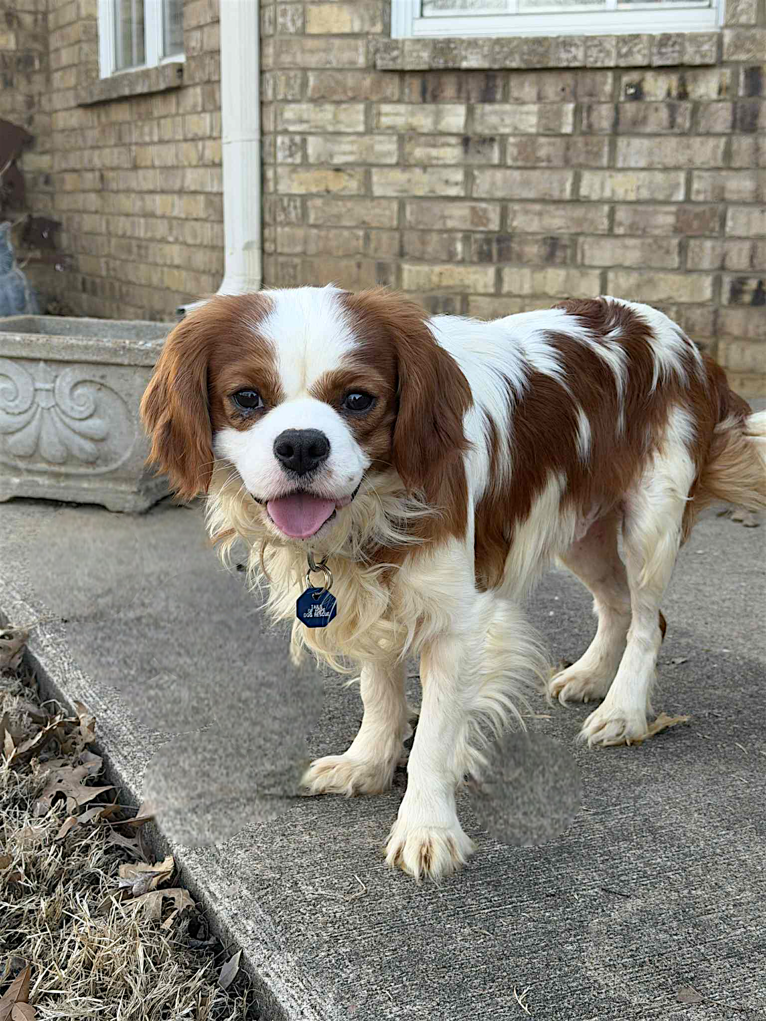 Keats is a beautiful Blenheim (red and white) King Charles Cavalier who recently joined our rescue as a breeder release. He is approximately 4 years old, weighs 19 pounds, and is a very sweet boy who is just beginning his journey into companion life.