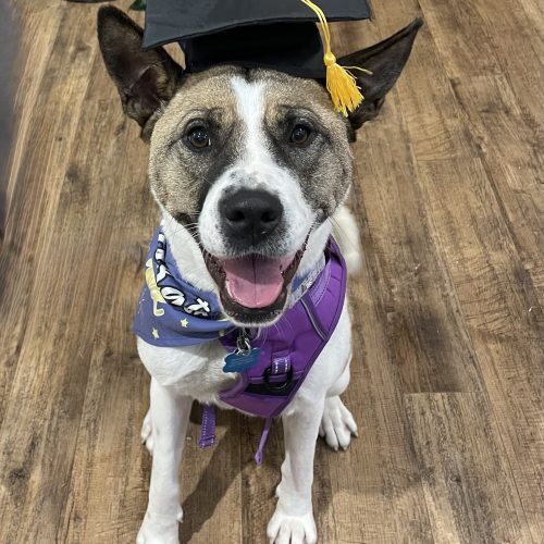 She recently graduated from basic obedience class and is a doggy daycare superstar!