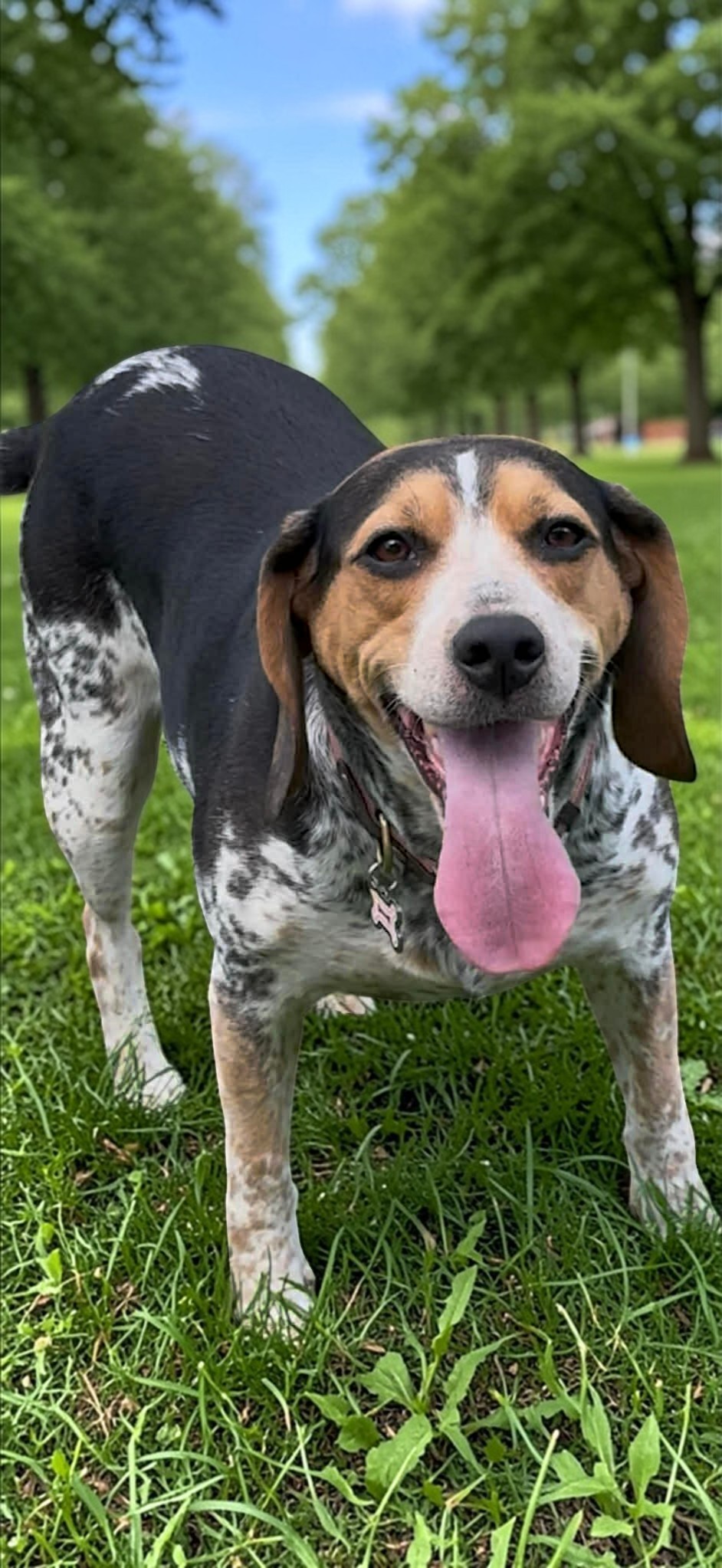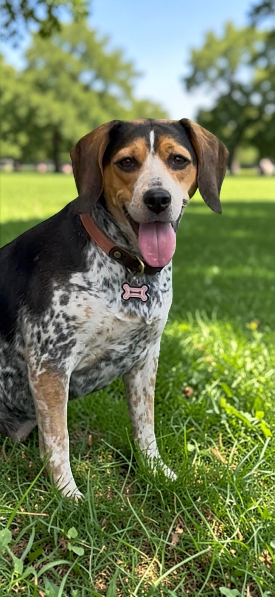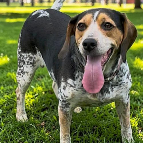 Lucy is an adorable Beagle /Cattle dog mix ( we ran her DNA) who came to us after being surrendered to a shelter. Thanks to one of our amazing, beagle-savvy foster homes, she now has a safe and loving place to land. Lucy is 705 Beagle and 30% Australian Cattle dog, which makes such a great mix!