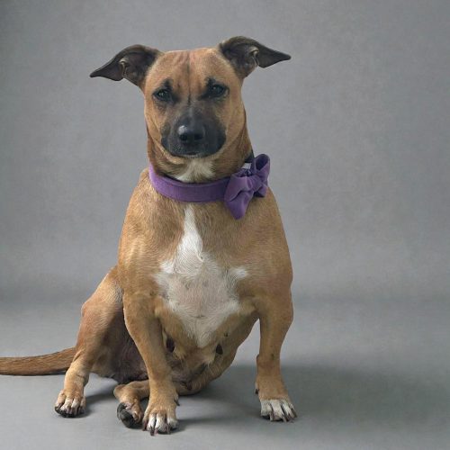 She is wonderful with other dogs, great with cats, and loves children. She’s a medium-sized girl at about 25 pounds and is young — roughly 3 years old.